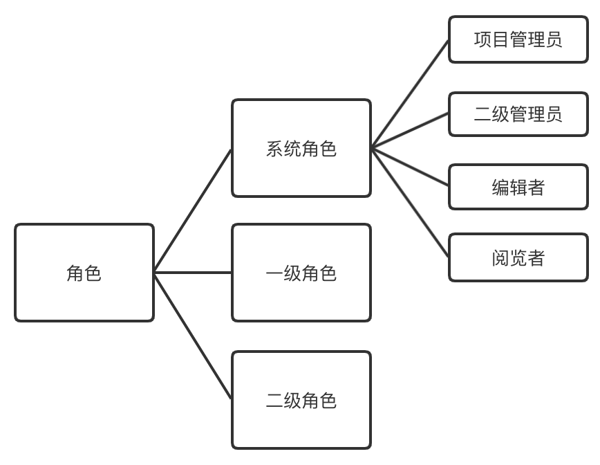 具体来看,本产品将角色分成三类:系统角色、一级角色和二级角色。