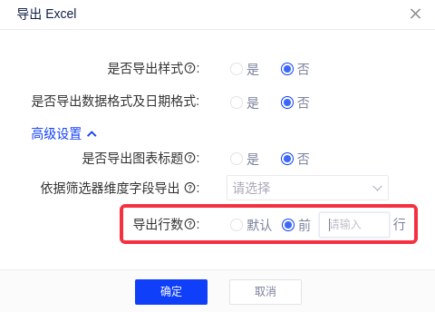 导出支持自定义导出行数(前n行数),默认行数与直接导出行数相同;