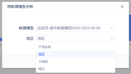 (1)先使用模型A的地区字段来做列表筛选器,然后进行跨数据模型关联设置;
