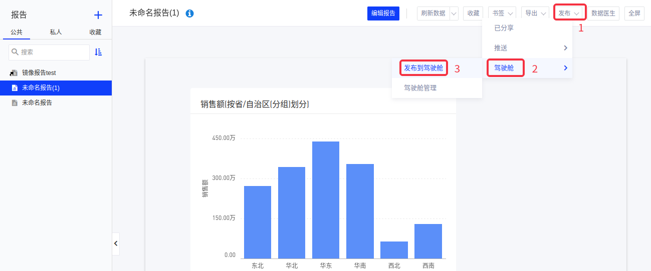 某单位的领导特别关注某张报告,这时就可以把这张报告发布到该领导的驾驶舱,这位领导下次进入产品后直接就会进入该报告的阅览模式。