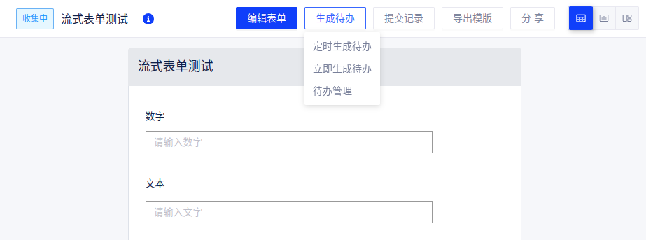 表单发布后,通过该功能可以通知填写人,但填写人必须是项目内的用户。待办生成方式分为定时待办和立即待办两种。