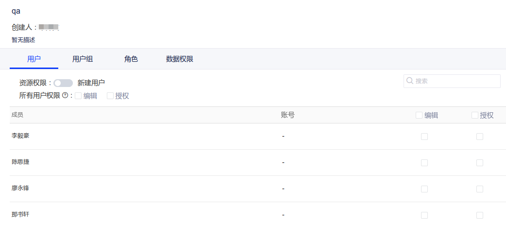 • 更换创建人时,请确保新的创建人已经拥有了相关的资源和操作权限;