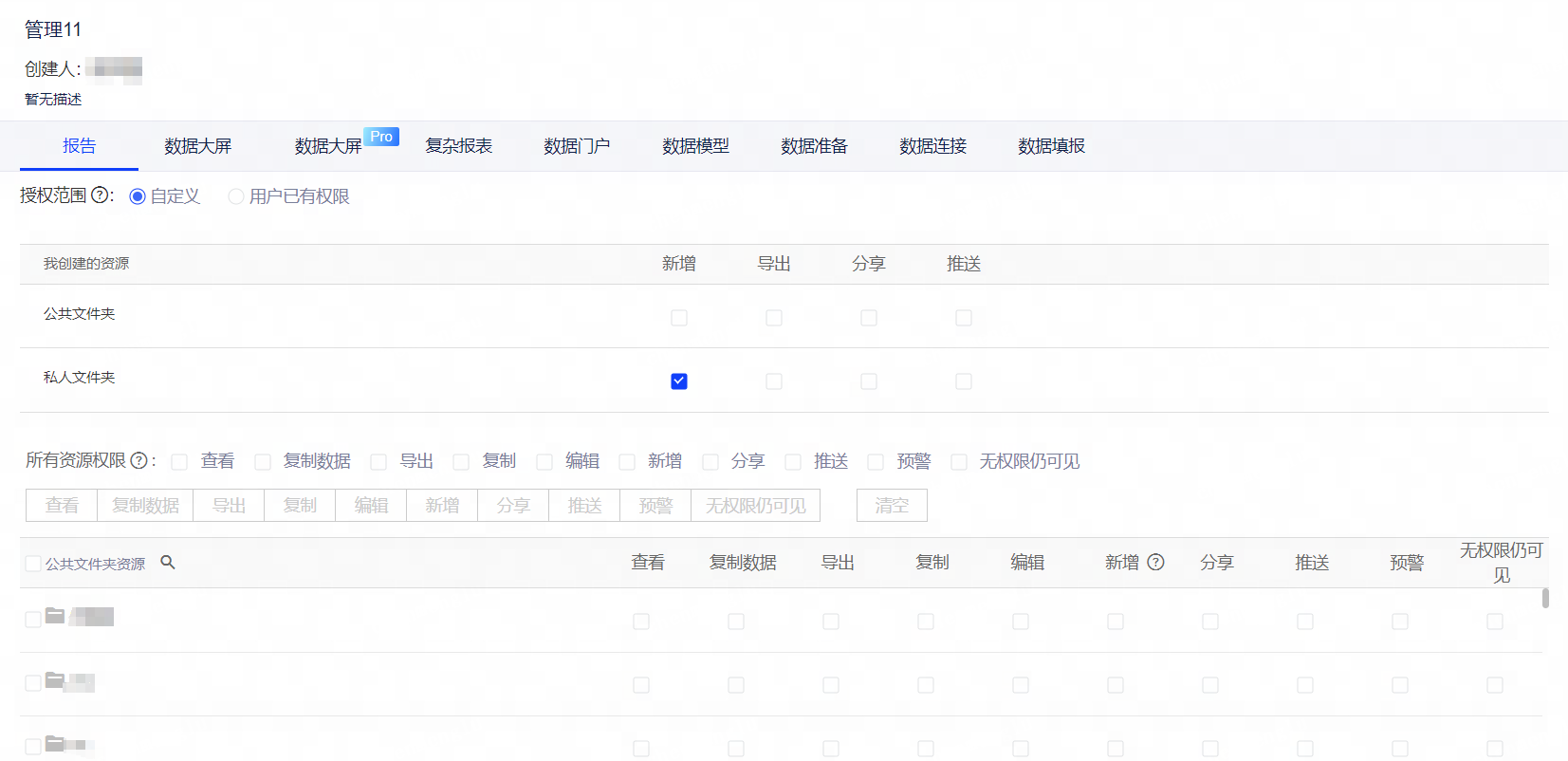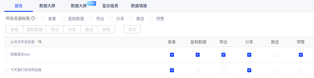 • 且报告资源同时包含查看、导出、分享、定时邮件操作权限