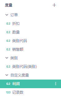 (2)点击确定后,便可在字段列表区“自定义度量”分类中看到新建的“利润”字段;
