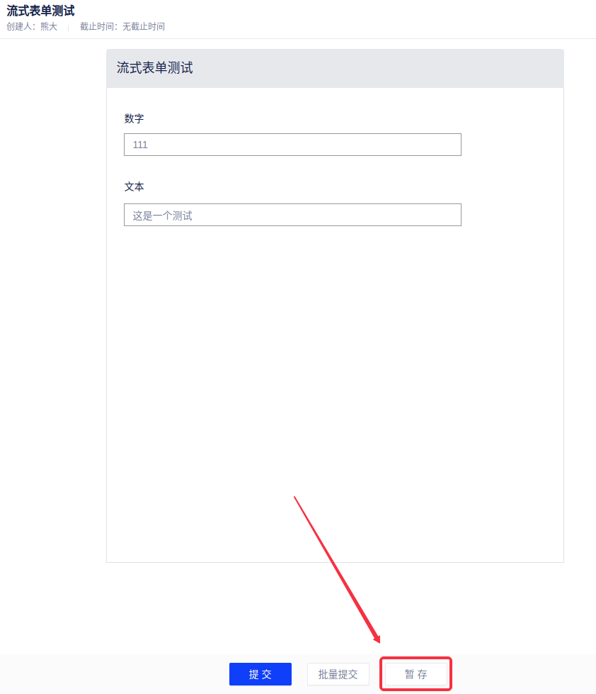 如果您开启了“表单暂存”功能,则用户在填报时可以将填写的数据暂时保存。