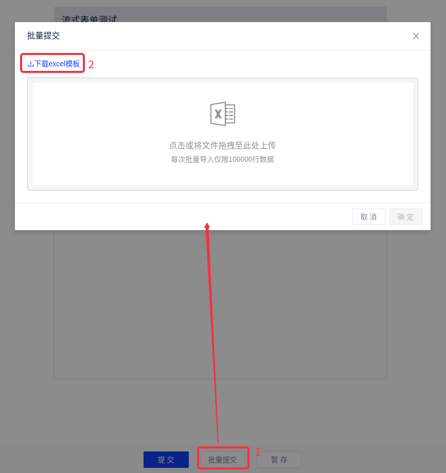 批量提交指多条数据记录汇总在一个文件内实现批量的数据入库,而不支持批量提交多个仅含一条数据记录的文件。目前仅实名流式表单支持批量提交,操作步骤如下: