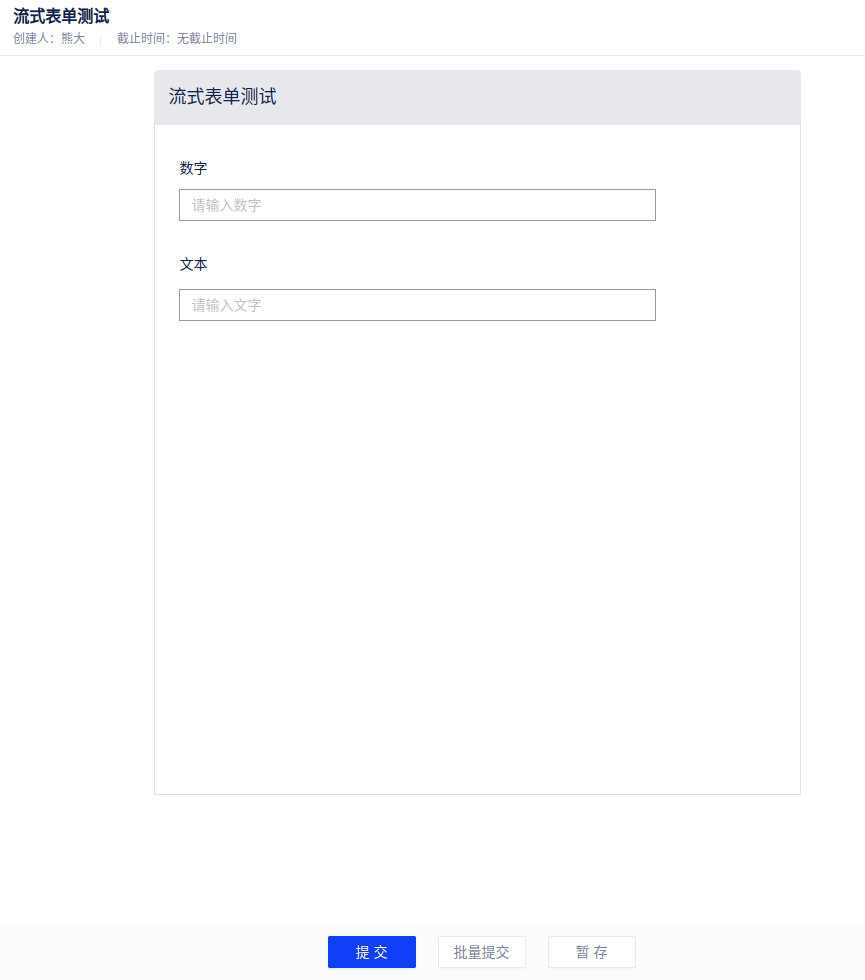 在电脑端的表单填写有三种方式可供选择,分别是提交、批量提交和暂存。