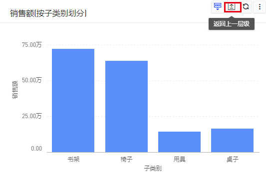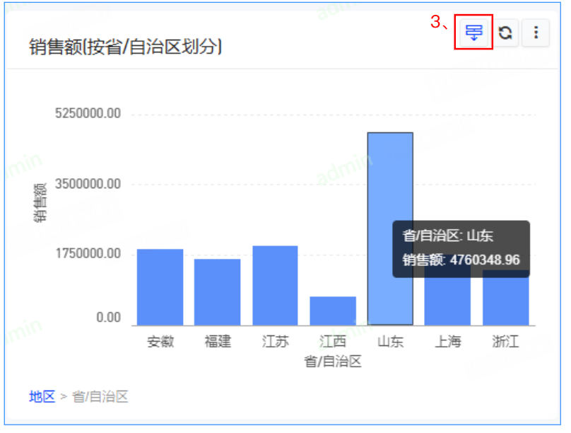 聚集下钻,可以实现用户点击图,下钻到另外一个字段,比如地区下钻到产品类别,出来的是这个地区下面的产品类别的分布数据。