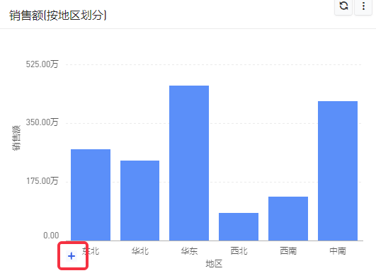 创建层级之后,在已经创建的报表中,可以发现原先的X轴上的“地区”字段之前出现了一个加号,如下图所示: