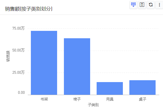 (5)再继续点击“家具”的柱子,则会进入华东地区家具下,产品子类别的分布数据;