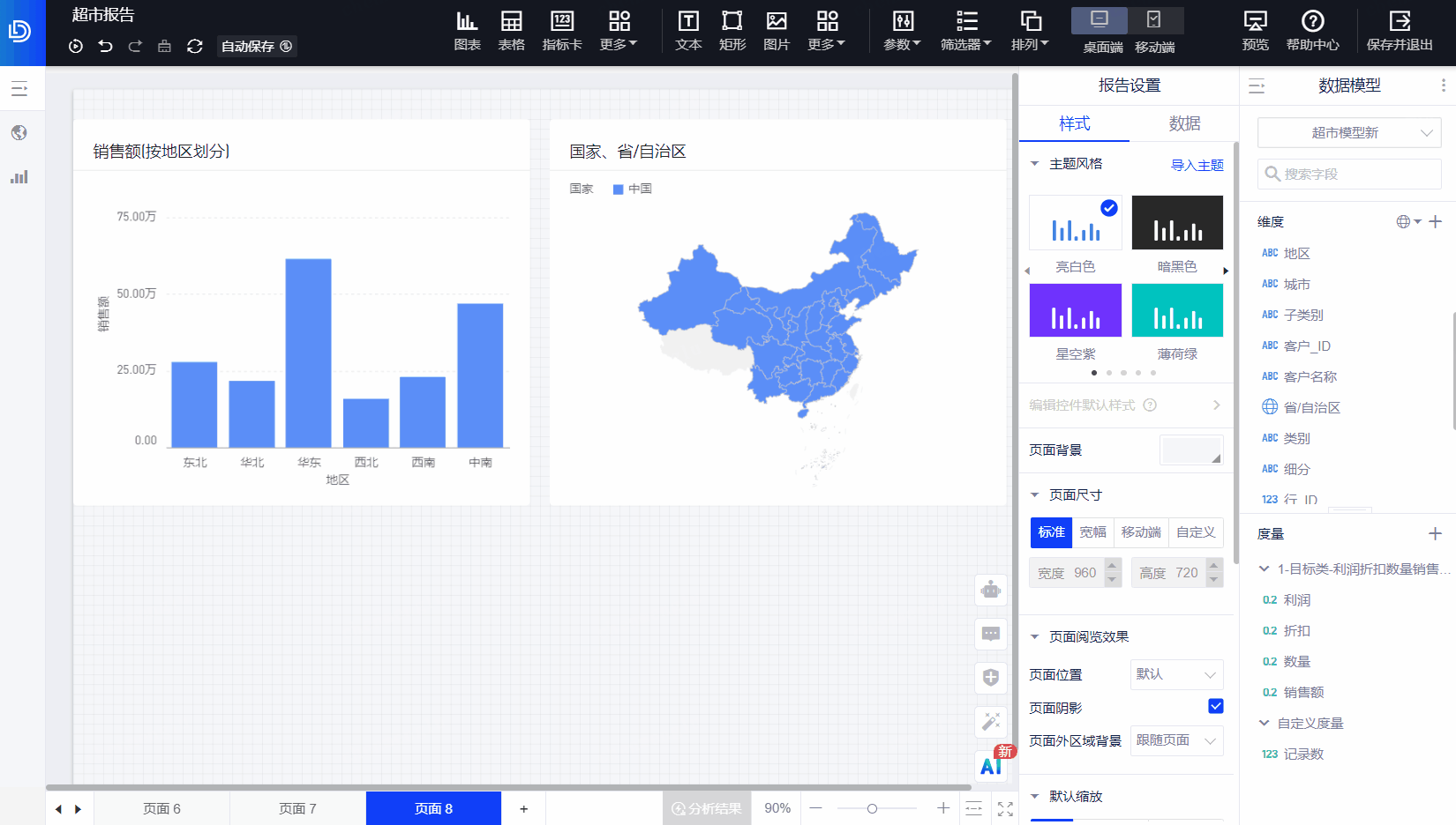 - 层级页支持拖入「图表、表格、交叉表、漏斗图、雷达图、桑基图、旭日图、指标拆解树、指标卡、指标看板、仪表图、热力地图、得分环、k线图、文本框」组件