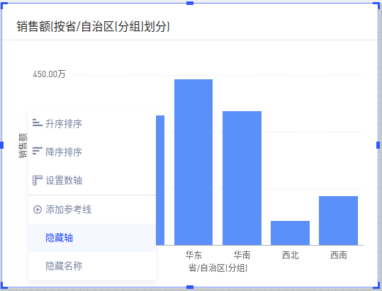 (1)在报告编辑页面,双击进入图表的编辑模式,在坐标轴上右键,可以对数轴进行设置;