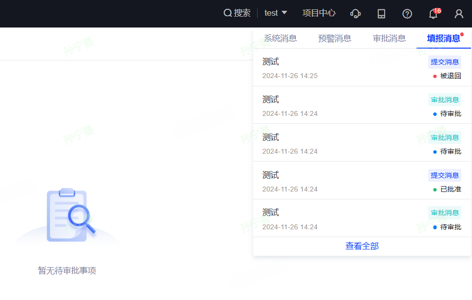 填报审批流结束支持提醒填报人,通知方式包括系统消息、邮件、短信三种方式,下方仅展示系统消息通知样式。