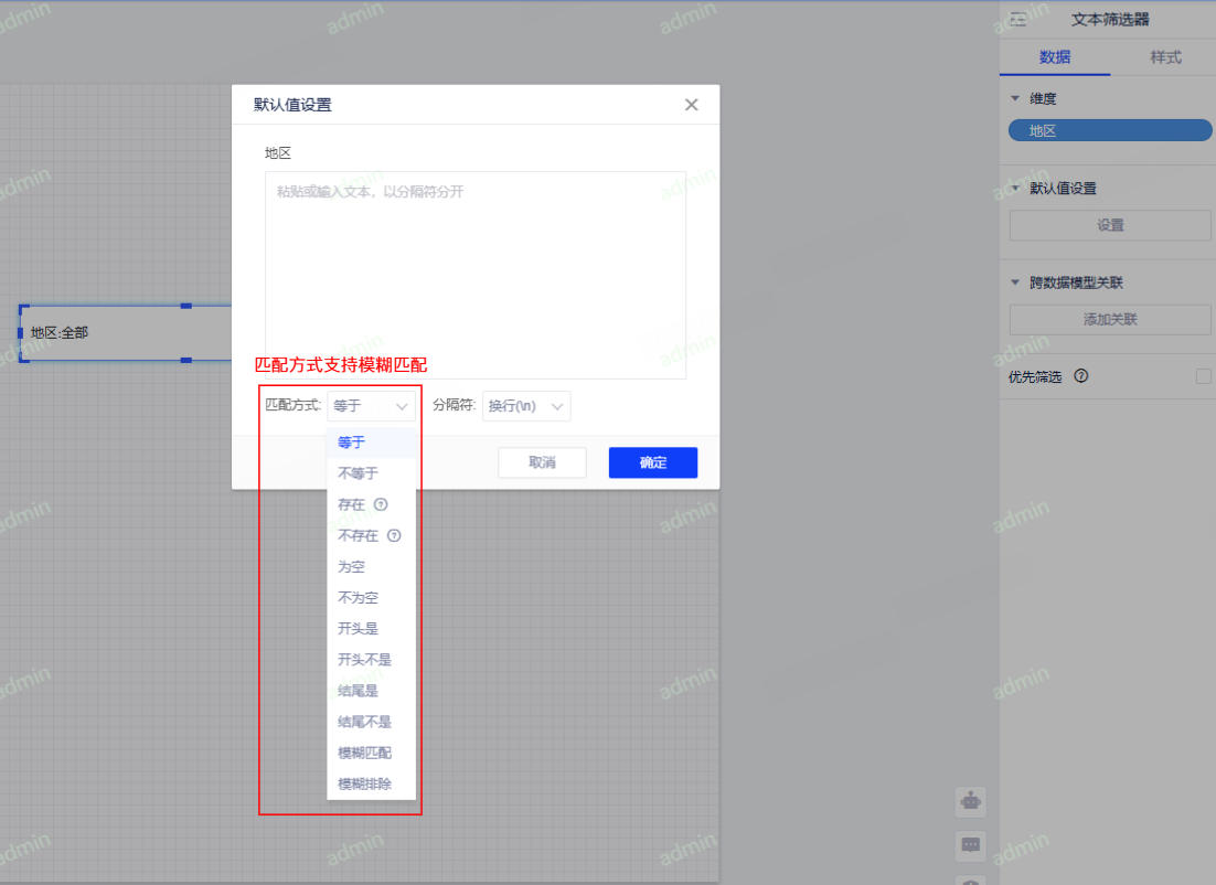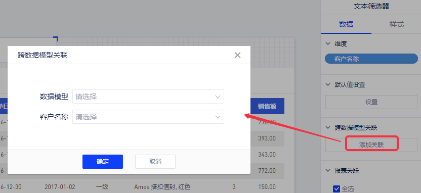 (3)在设置多个模型时,针对于不同模型中同一字段,可以选择跨数据模型关联进行筛选;
