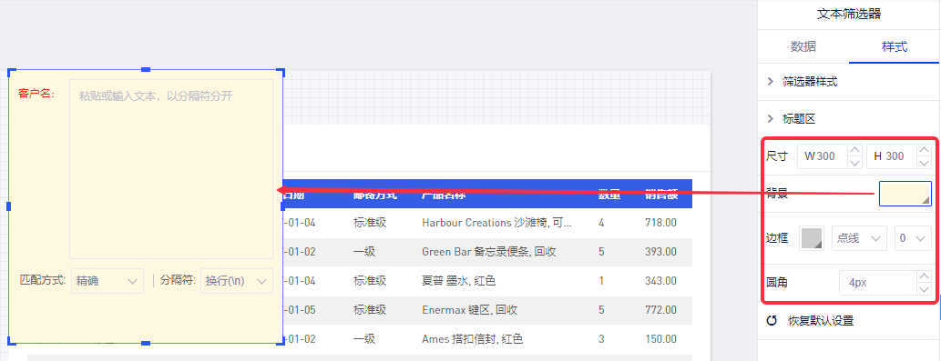 (3)可以修改整个文本筛选器的背景颜色和边框。
