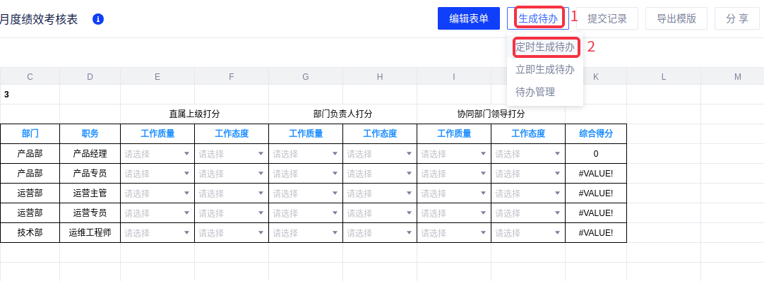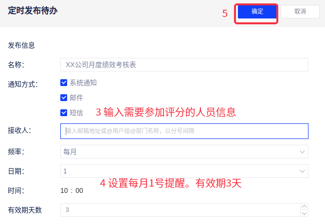 (2)创建一个定时待办任务,每月定时提醒目标用户进行绩效评分