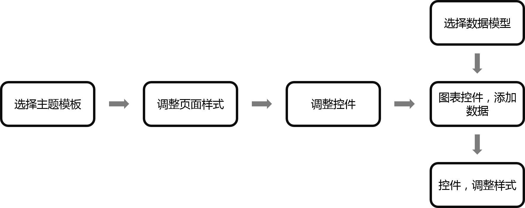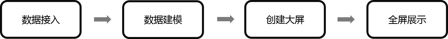 数据大屏使用流程大致如下,其中第一和第二步与报告的流程一致,如果您已完成数据模型的构建,可以直接从第三步开始。