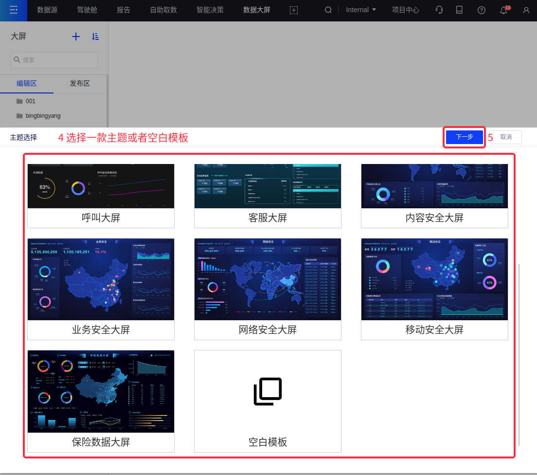 第三步:创建大屏