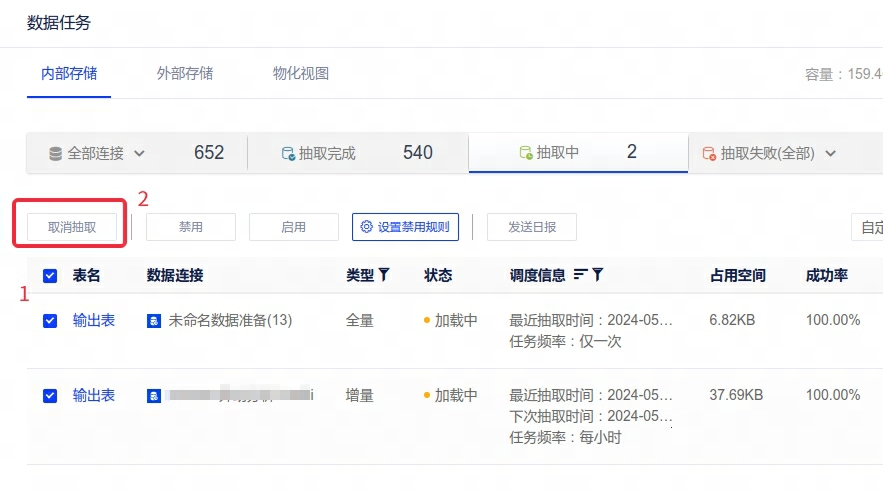 1、平台管理增加抽取频率配置,可控制项目内能够发起的抽取任务频率。若需禁止某个项目设置秒、分钟或小时等抽取任务频率,可在此勾选设置。