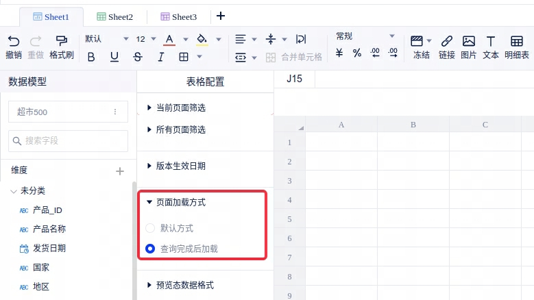 1、新增一种页面加载方式,阅览表格时会等待数据内容加载完成后再展示,配置入口如下:
