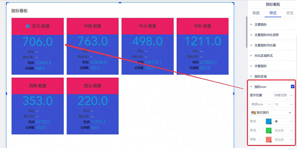 1、指标卡、指标看板新增指标icon功能。一个指标卡仅能设置一个icon,指标看板支持每个维度值独立设置icon,每个指标块设置一个icon。