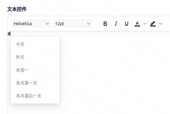 在文本框控件中,您可以直接用#号动态插入时间宏。