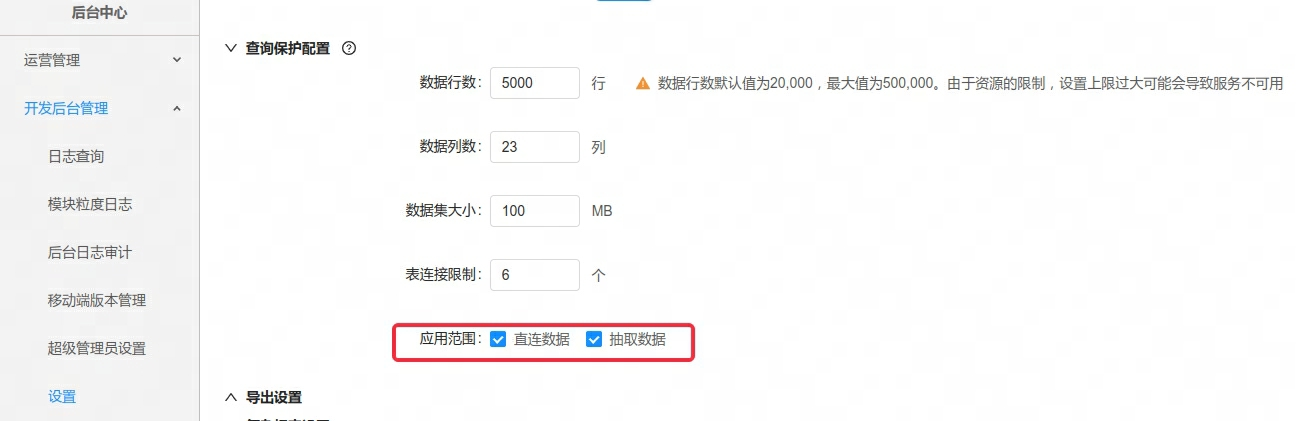 1、【数据保护增强】:直连和抽取支持分开配置,管理员可以针对某一种类型的查询单独配置数据保护。