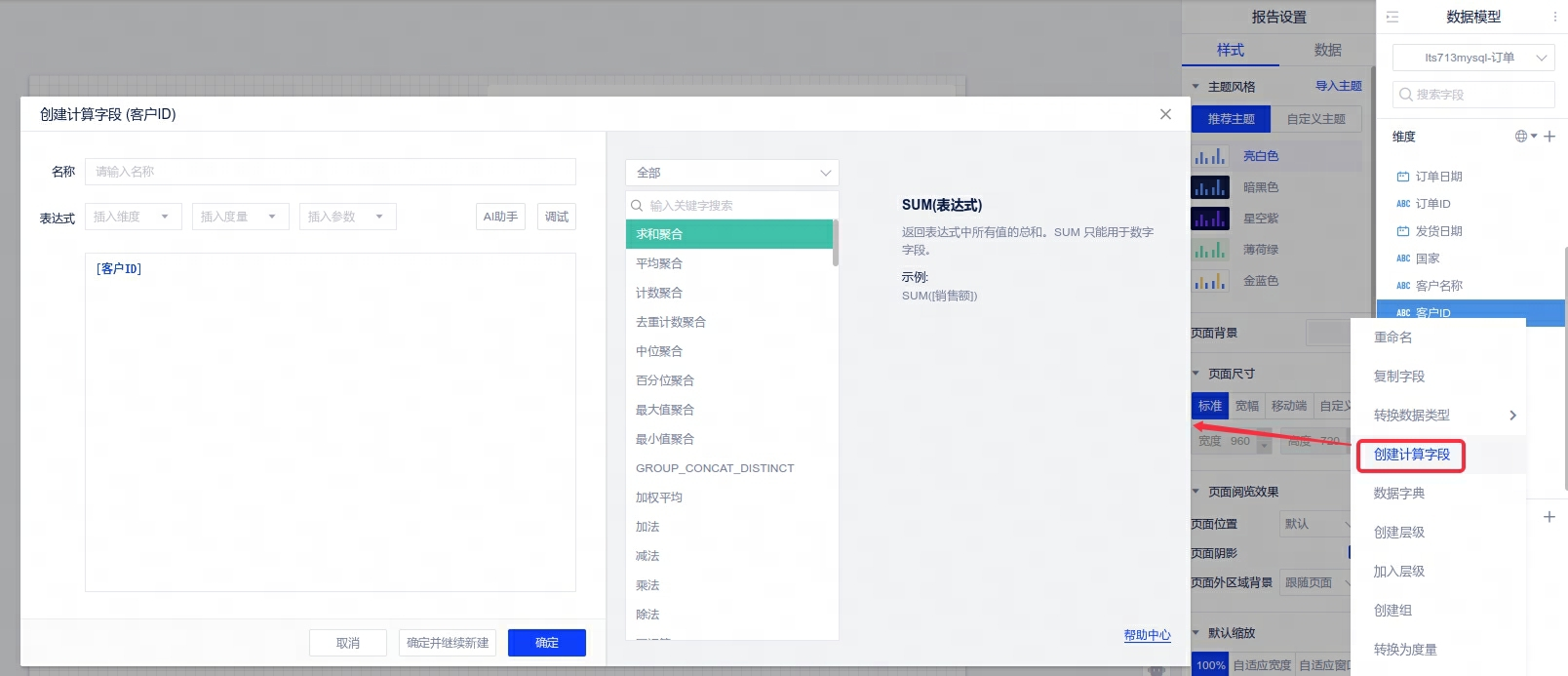 2、【交互增强】模型字段列表新增新建计算字段入口,分析师可以在模型列表中快速创建辅助字段。