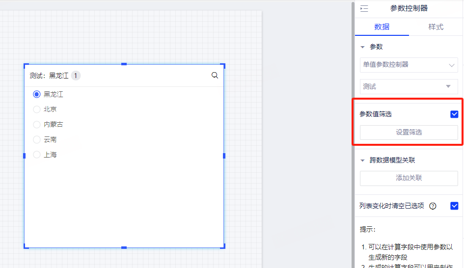 【新增】参数绑定模型字段支持筛选,可筛选部分成员进行展示。