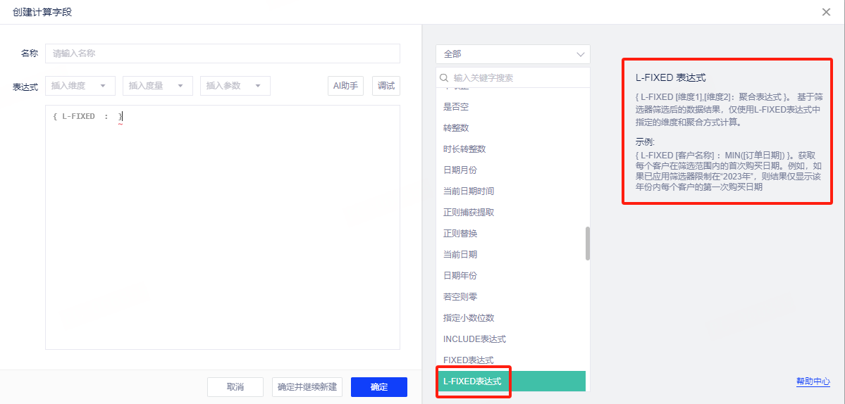 【新增】计算公式增加L-fixed函数,L-fixed函数可受筛选器影响,比fixed灵活性高,具体使用介绍参考L-fixed函数。