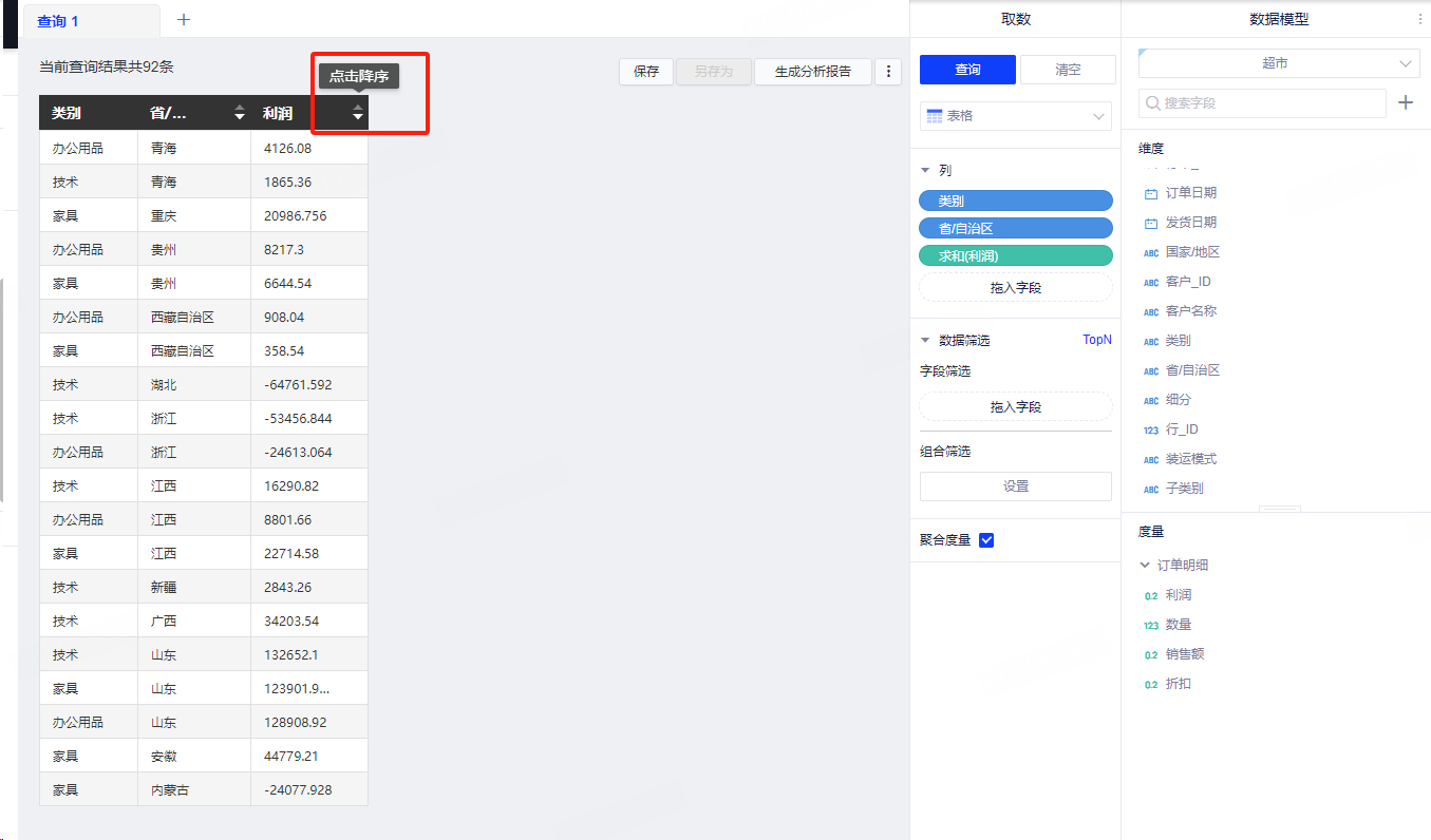 【优化】可视化取数字段排序可直接点击生效,无需二次点击查询按钮触发。