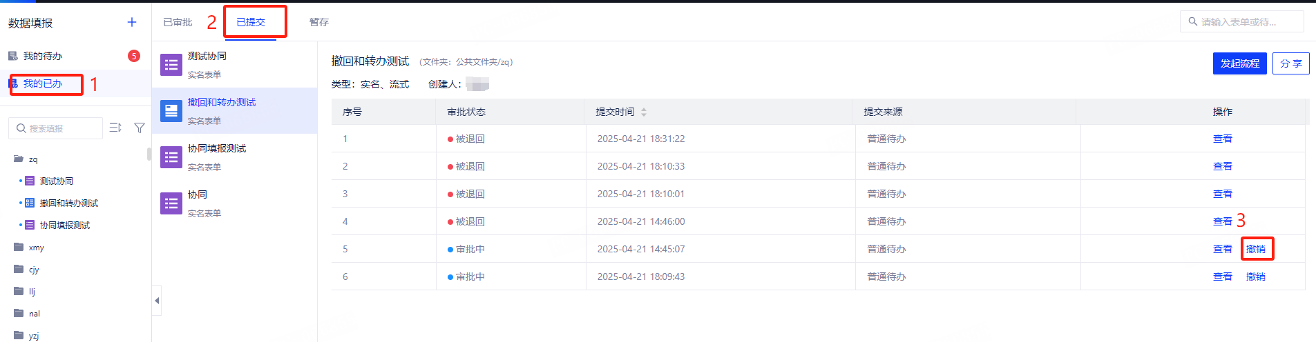 【新增】审批支持撤销,发起人可撤销审批中的表单,可及时修正错误内容,避免因错误提交导致流程卡顿。