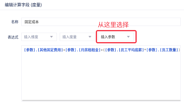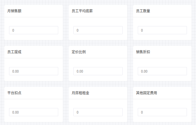 表达式:[参数].[月销售额]/[参数].[销售折扣][参数].[定价比例]+[参数].[月销售额][参数].[平台扣点]+[参数].[月销售额]*[参数].[员工提成]