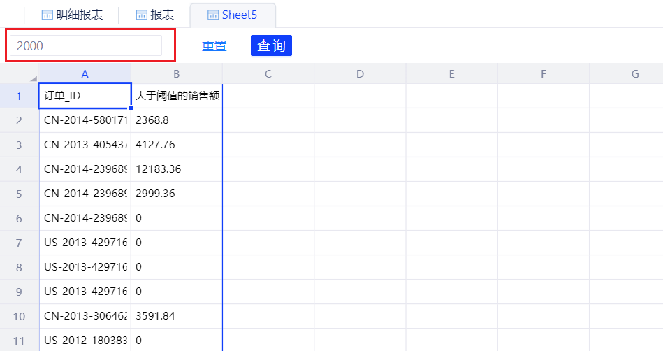 在阅览模式下,支持修改参数并点击查询更新表。