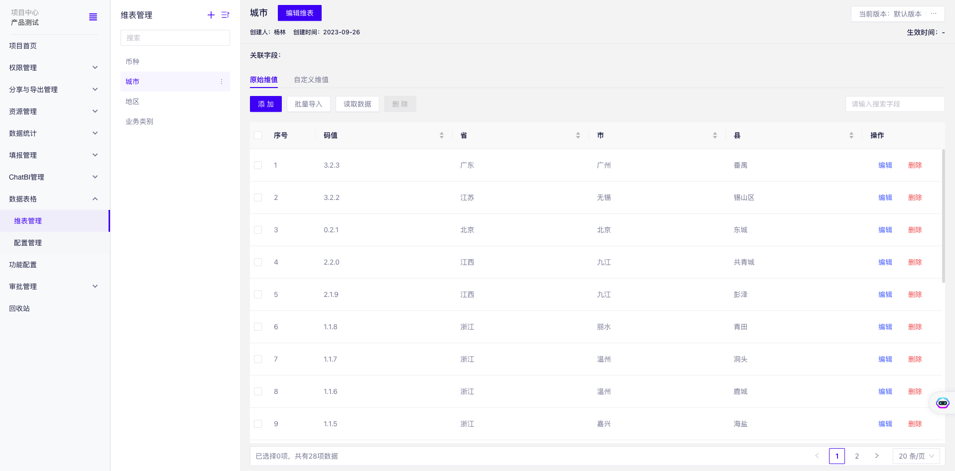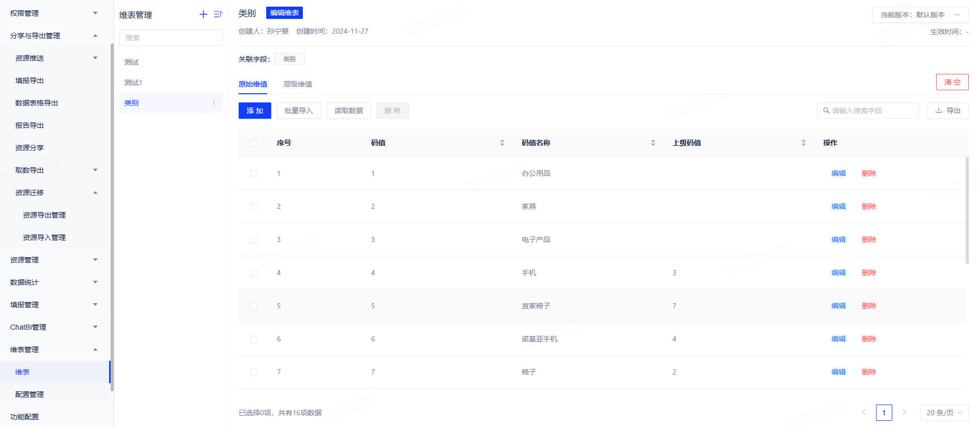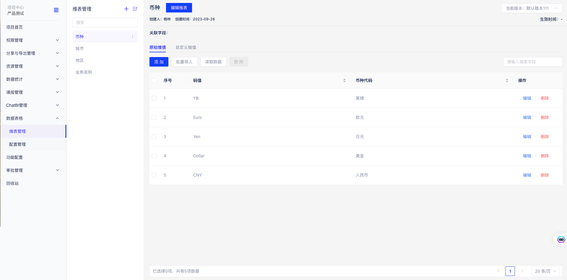 - 维度可以配置版本和生效日期,系统根据数据查询日期自动匹配版本