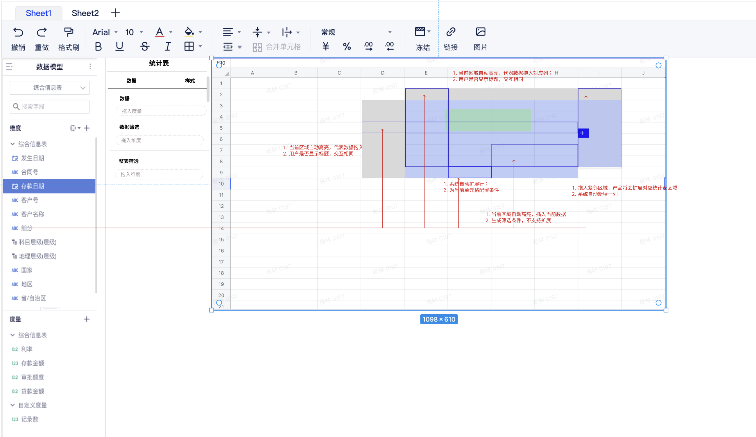- 整表、区域、整行实时展示口径,用户在使用过程中实时展现指标口径