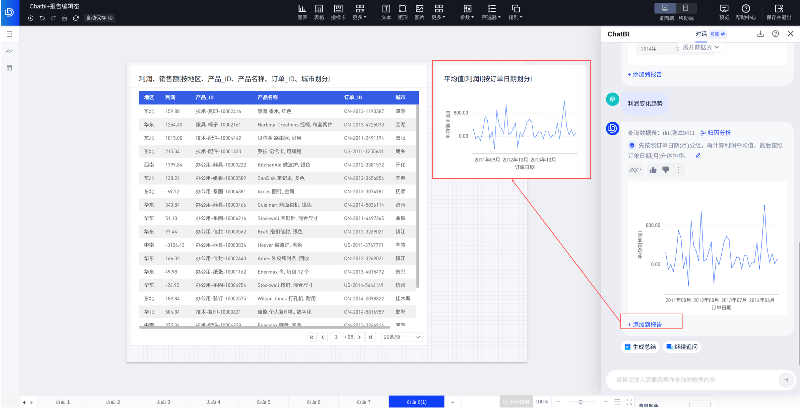 针对回答我可以做什么:您可以通过「添加到报告」功能,一键即可将图表添加至当前报告页,并可以对该图表的做进一步编辑。您可以同时点击[更多]展开操作:导出图表excel、查看图表SQL、换表查询、删除对话。
