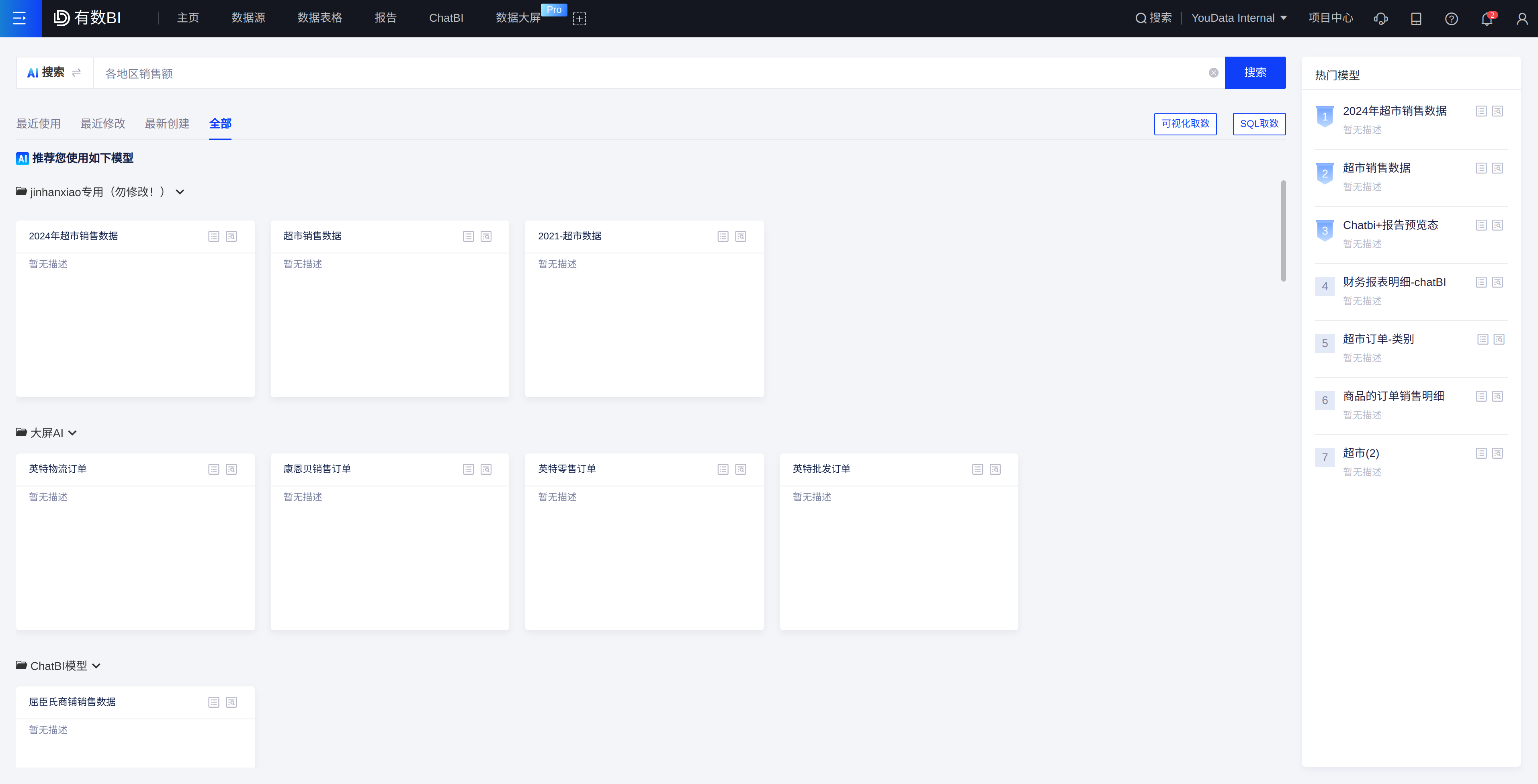 若您输入:各地区销售额,点击输入框右侧的「查询按钮」后,AI将展示推荐模型: