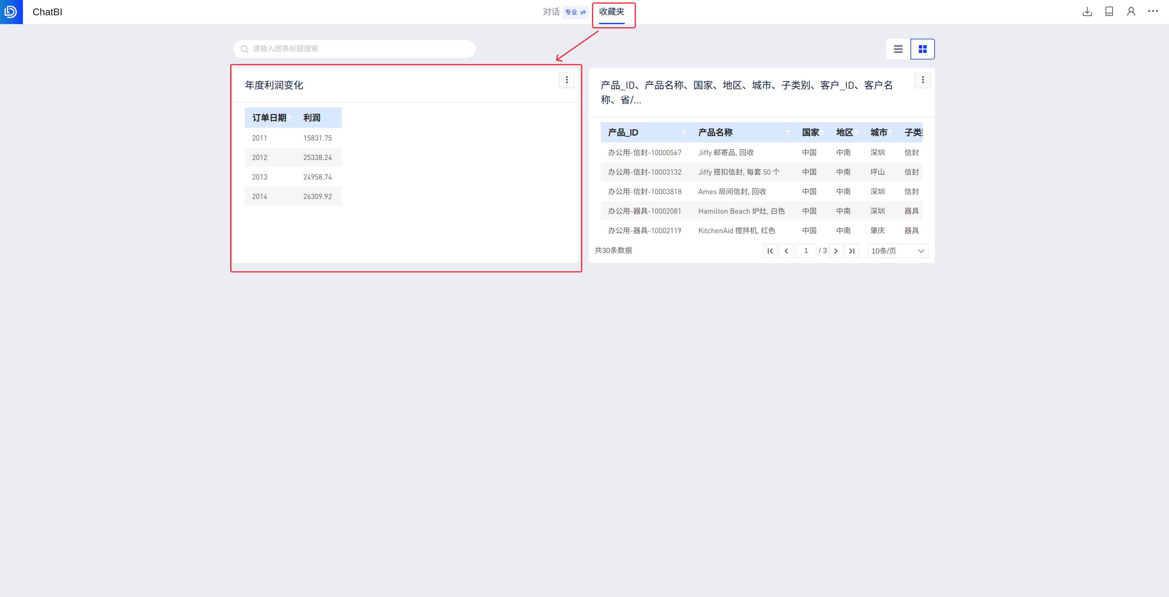 生成图表后,点击「收藏」按钮,即可将本次查询结果添加到收藏夹,下次可从收藏夹快速找到该图表。