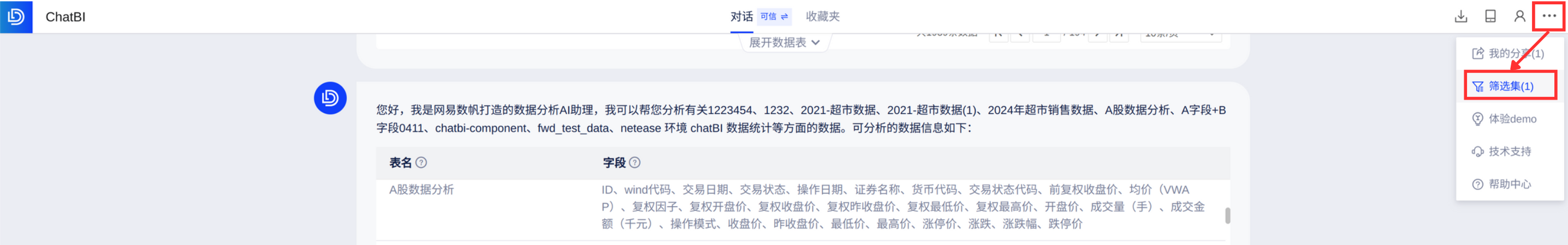 在问答窗口输入“@”引用筛选集,若已定义多个筛选集,则从中选取一个;