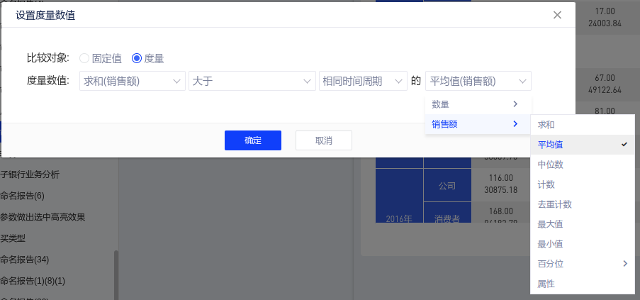 (1)以默认数据源为例,我们设置华东地区家具类目求和(销售额)与一个固定值的大小关系,然后系统会根据这个关系来进行预警。操作示例如下图: