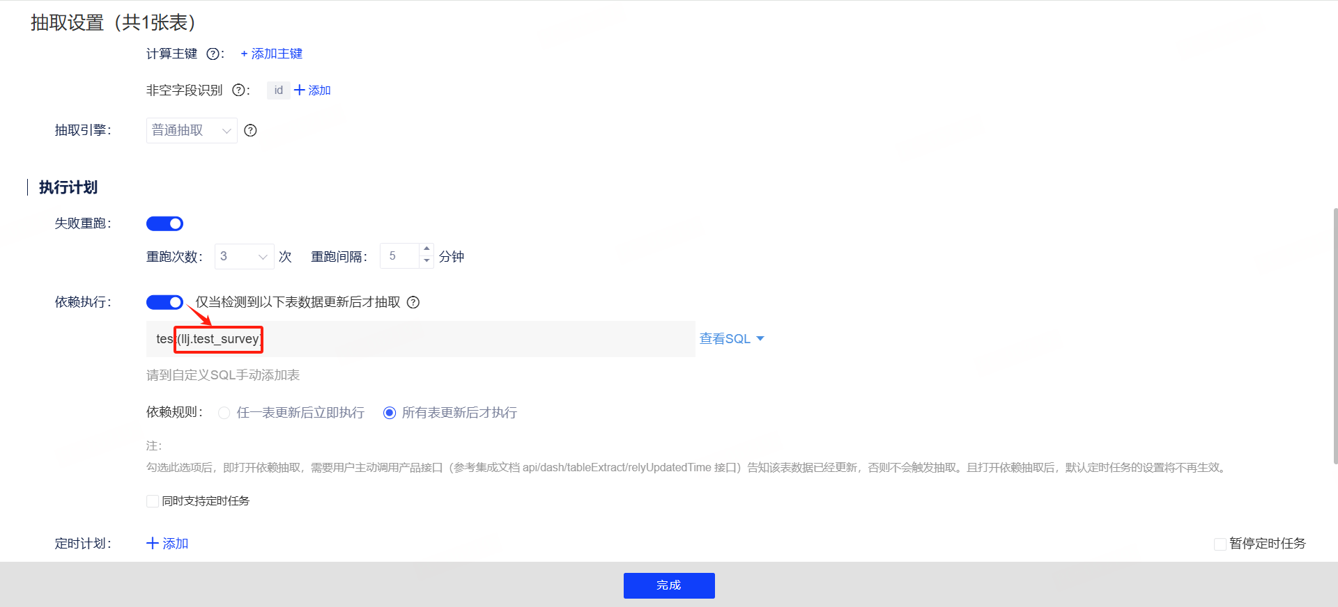 依赖抽取:当对表设置抽取并开启依赖执行;可调用接口触发抽取。