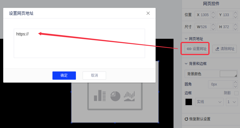 (3)点击“设置网址”,在弹出的窗口中为该控件输入url地址后点击确定即可访问。