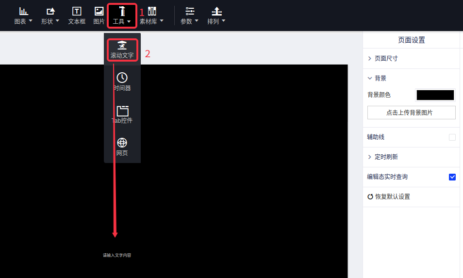 (1)选择“工具”控件,然后点击“滚动文字”;
