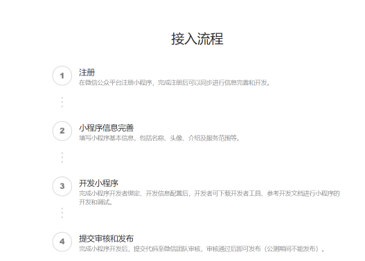 您需要在微信公众平台注册账号,按照微信官方的[小程序接入流程]进行小程序的上架: