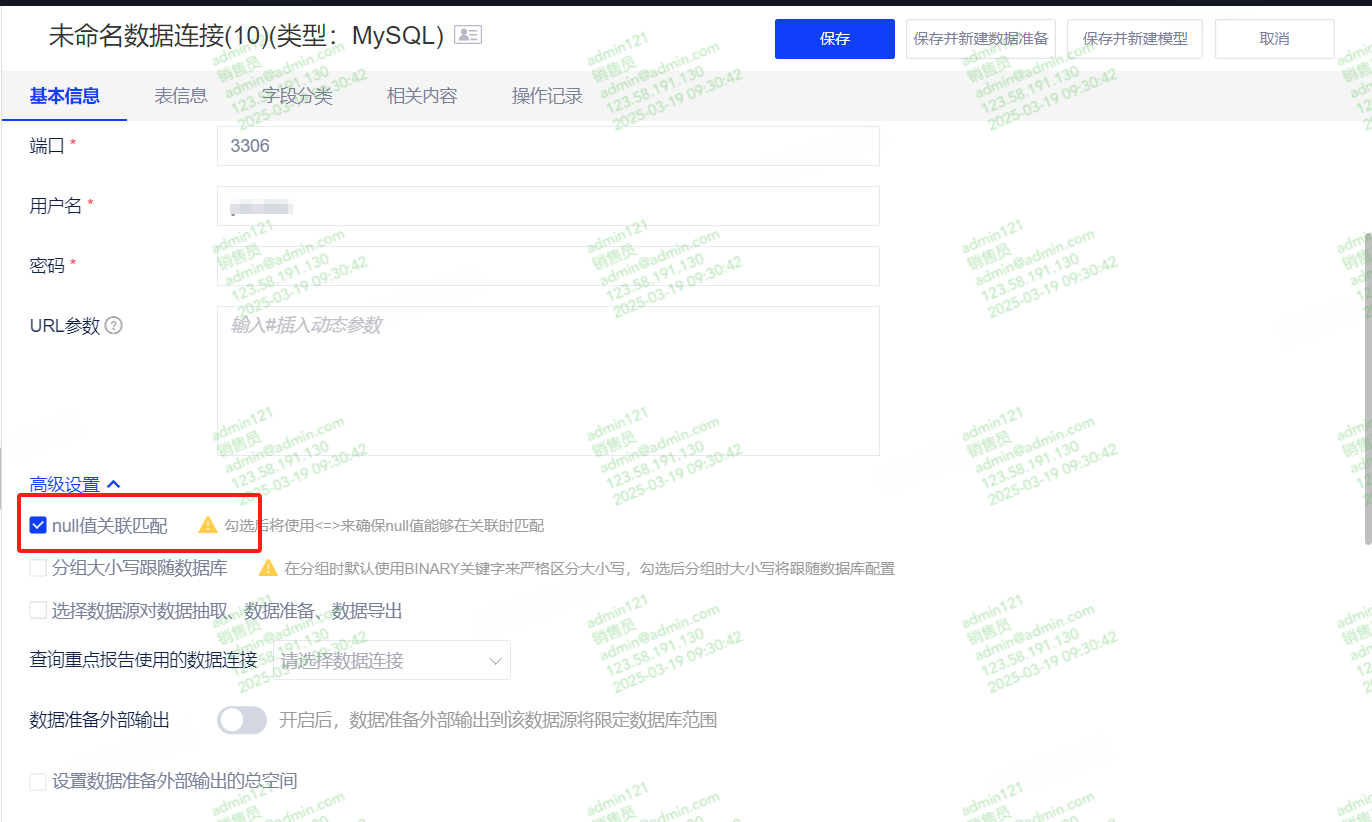 左右合并的两张表合并依据中如果有 null 值,null 之间不会互相匹配。若您需要对它们进行匹配,可以在【数据连接】-【高级设置】中开启null值关联匹配。