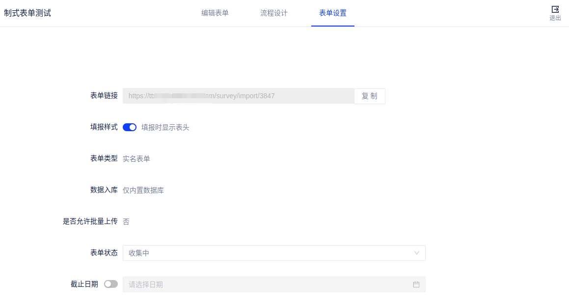 - 截止日期:可设置表单的截止日期,超出截止日期后表单将无法填写