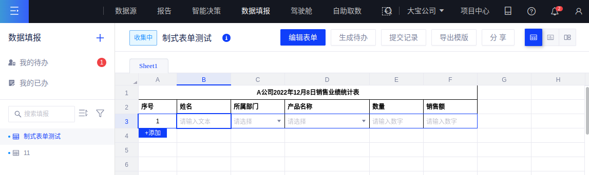 您在完成表单的编辑后需要将表单发布,只有发布后表单成员才能进行数据填写。