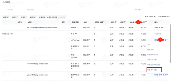 对于部分用户,管理员可手动[设置飞书匹配],通过飞书用户的手机号、姓名或者邮箱与产品用户进行匹配,匹配完成后的用户可以直接使用飞书账号免密登录。