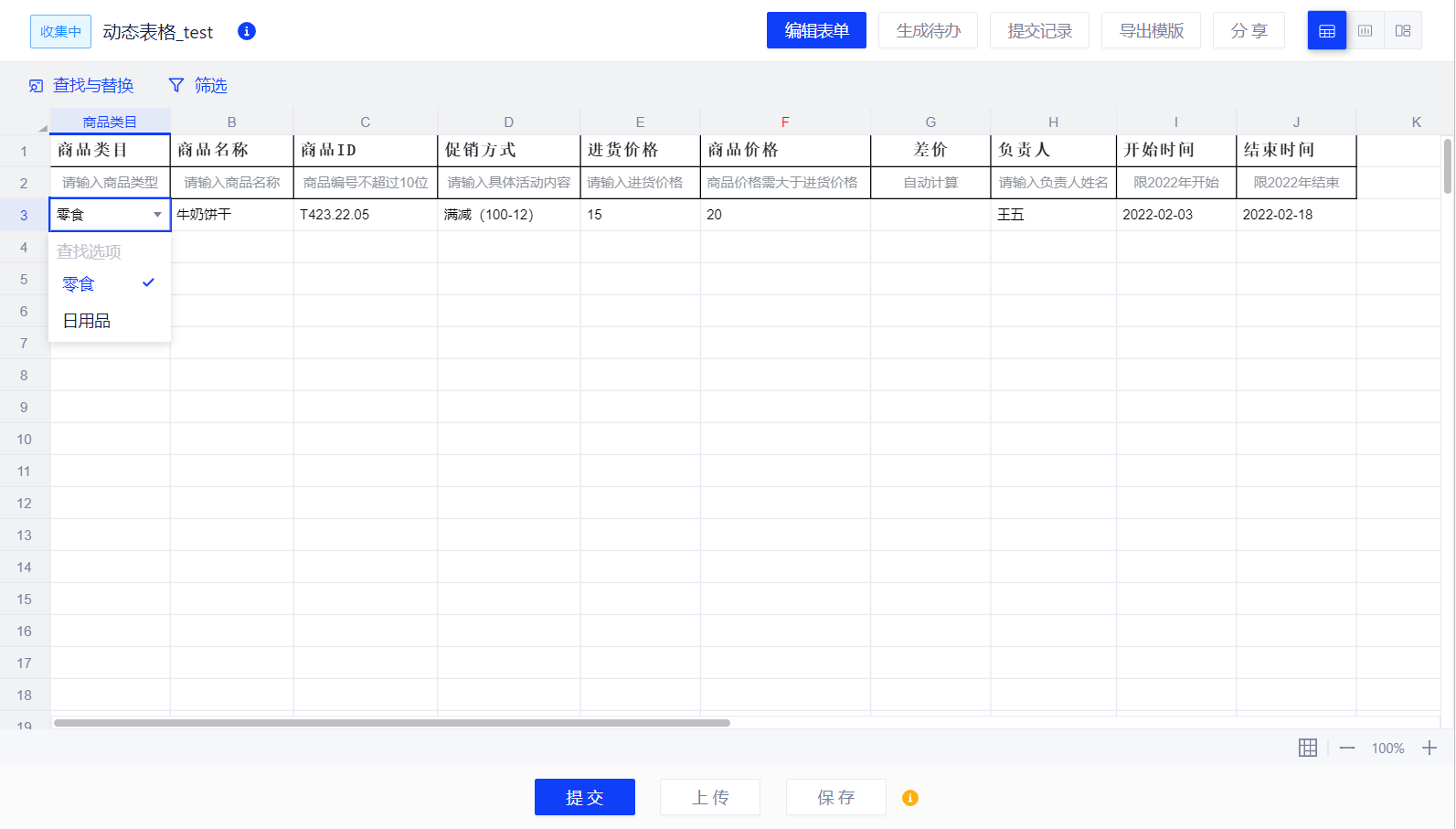 (1)手动填写:在表格中点击空白区域,即可直接开始手动填写